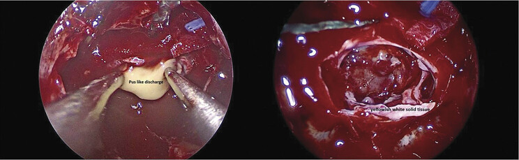 Surgical intervention via an endoscopic endonasal transsphenoidal approach revealed pus and solid tissue. Culture identified C. acnes, and histology showed non-neoplastic pituitary tissue with chronic inflammation. Post-surgical recovery was excellent with antibiotic therapy, though hormone replacement continues due to persistent hypopituitarism.