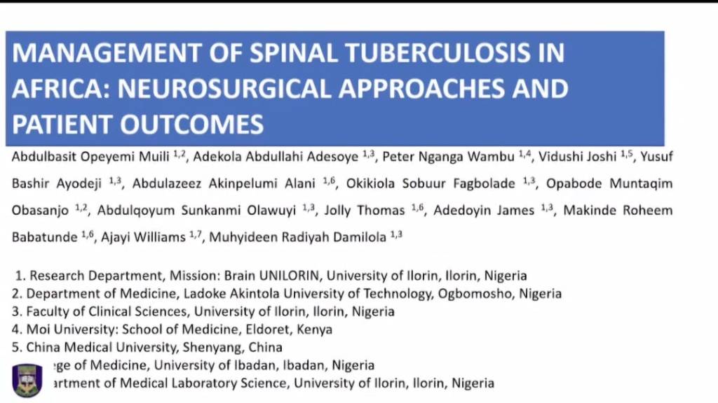 A significant personal highlight was being a co-author of the abstract,‘Management of Spinal Tuberculosis in Africa: Neurosurgical Approaches and Patient Outcomes’, presented at the conference. Huge gratitude to our Research Director, Muili Abdulbasit Opeyemi, for his expert guidance throughout this research.